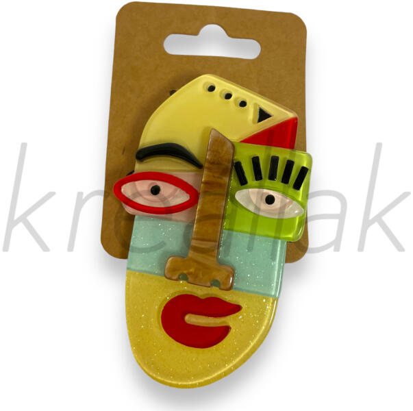 Picasso fej sárga kitűző