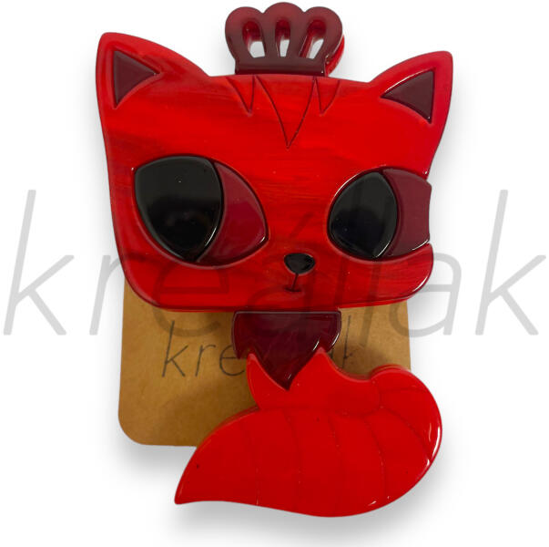 Piros cica kitűző